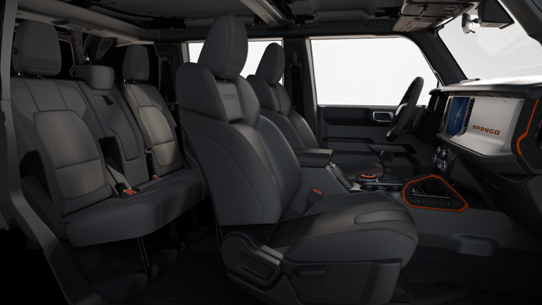 12 Speakers, 4-Wheel Disc Brakes, ABS brakes, Air Conditioning, Alloy wheels, AM/FM radio: SiriusXM with 360L, Auto High-beam Headlights, Auto-dimming Rear-View mirror, Automatic temperature control, Brake assist, Compass, Connected Navigation, Convertible HardTop, Convertible roof lining, Delay-off headlights, Driver door bin, Driver vanity mirror, Dual front impact airbags, Dual front side impact airbags, Electronic Stability Control, Emergency communication system: 911 Assist, Exterior Parking Camera Rear, Front anti-roll bar, Front Bucket Seats, Front Center Armrest, Front dual zone A/C, Front fog lights, Front reading lights, Front wheel independent suspension, Fully automatic headlights, Garage door transmitter, Glass rear window, Heated door mirrors, Heated front seats, Heated steering wheel, Illuminated entry, Integrated roll-over protection, Internet access capable: FordPass Connect, Leather Shift Knob, Low tire pressure warning, Marine Grade Vinyl Bucket Seats, Navigation system: Connected Navigation, Occupant sensing airbag, Outside temperature display, Overhead airbag, Overhead console, Panic alarm, Passenger door bin, Passenger vanity mirror, Power door mirrors, Power steering, Power windows, Radio data system, Radio: B&O Sound System by Bang & Olufsen, Rear anti-roll bar, Rear seat center armrest, Rear window defroster, Rear window wiper, Remote keyless entry, Security system, SiriusXM w/360L, Speed control, Split folding rear seat, Steering wheel mounted audio controls, SYNC 4, Tachometer, Telescoping steering wheel, Tilt steering wheel, Traction control, Trip computer, Turn signal indicator mirrors, Variably intermittent wipers, Voltmeter, and Wheels: 17 Black High Gloss-Painted Aluminum.
