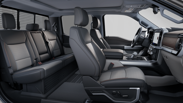 Bed Utility Package (4 Pickup Box Tie-Down Plates, LED Box Lighting, Power Tailgate, and Pro Access Tailgate), Equipment Group 502A High (2nd Row Heated Seats, Ambient Lighting - Ice Blue Color Only, Heads-Up Display, Illuminated Driver & Passenger Visors, Power-Sliding Rear Window, Radio: B&O Unleashed Sound System by Bang & Olufsen, and Wheels: 20 Chrome-Like PVD), FX4 Off-Road Package (4x4 FX4 Off-Road Bodyside Decal, Hill Descent Control, Monotube Rear Shocks, Off-Road Tuned Front Shock Absorbers, Rock Crawl Mode, and Tray Style Floor Liner w/o Carpet Mats), Mobile Office Package (Console Worksurface, Partitioned Lockable Rear Storage, and Wireless Charging), Tow/Haul Package, 4WD, 4-Wheel Disc Brakes, 6 Extended Running Boards, 8 Speakers, ABS brakes, ActiveX Trimmed Bucket Seats, Adjustable pedals, Air Conditioning, Alloy wheels, AM/FM radio: SiriusXM with 360L, Auto High-beam Headlights, Auto-dimming door mirrors, Auto-dimming Rear-View mirror, Automatic temperature control, BlueCruise Equipped (1-Year Plan), Brake assist, Bumpers: chrome, Chrome wheels, Compass, Delay-off headlights, Driver door bin, Driver vanity mirror, Dual front impact airbags, Dual front side impact airbags, Electronic Stability Control, Emergency communication system: SYNC 4 911 Assist, Front anti-roll bar, Front Bucket Seats, Front Center Armrest, Front dual zone A/C, Front fog lights, Front License Plate Bracket, Front reading lights, Front wheel independent suspension, Fully automatic headlights, Garage door transmitter, Heated door mirrors, Heated front seats, Heated steering wheel, Illuminated entry, Internet access capable: FordPass Connect 5G, Low tire pressure warning, Memory seat, Navigation system: Connected Navigation, Occupant sensing airbag, Outside temperature display, Overhead airbag, Overhead console, Panic alarm, Passenger door bin, Passenger vanity mirror, Pedal memory, Power door mirrors, Power driver seat, Power passenger seat, Power steering, Power windows, Radio data system, Radio: B&O Sound System by Bang & Olufsen, Rain sensing wipers, Rear reading lights, Rear seat center armrest, Rear step bumper, Rear window defroster, Remote keyless entry, Security system, Speed control, Split folding rear seat, Steering wheel mounted audio controls, SYNC 4 w/Enhanced Voice Recognition, Tachometer, Telescoping steering wheel, Tilt steering wheel, Traction control, Trip computer, Turn signal indicator mirrors, Twin Panel Moonroof, Variably intermittent wipers, Ventilated front seats, Voltmeter, and Wheels: 18 Chrome-Like PVD.