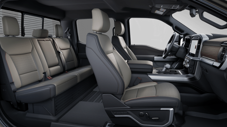 Bed Utility Package (4 Pickup Box Tie-Down Plates, LED Box Lighting, Power Tailgate, and Pro Access Tailgate), Equipment Group 502A High (Wheels: 20 Chrome-Like PVD), FX4 Off-Road Package (4x4 FX4 Off-Road Bodyside Decal, Hill Descent Control, Monotube Rear Shocks, Off-Road Tuned Front Shock Absorbers, Rock Crawl Mode, and Tray Style Floor Liner w/o Carpet Mats), Tow/Haul Package, 3.5L PowerBoost Full-Hybrid V6, 4WD, 4-Wheel Disc Brakes, 6 Extended Running Boards, 8 Speakers, ABS brakes, ActiveX Trimmed Bucket Seats, Adjustable pedals, Air Conditioning, Alloy wheels, AM/FM radio: SiriusXM with 360L, Auto High-beam Headlights, Auto-dimming door mirrors, Auto-dimming Rear-View mirror, Automatic temperature control, Brake assist, Bumpers: chrome, Chrome wheels, Compass, Delay-off headlights, Driver door bin, Driver vanity mirror, Dual front impact airbags, Dual front side impact airbags, Electronic Stability Control, Emergency communication system: SYNC 4 911 Assist, Front anti-roll bar, Front Bucket Seats, Front Center Armrest, Front dual zone A/C, Front fog lights, Front License Plate Bracket, Front reading lights, Front wheel independent suspension, Fully automatic headlights, Garage door transmitter, Heated door mirrors, Heated front seats, Heated steering wheel, Illuminated entry, Internet access capable: FordPass Connect 5G, Low tire pressure warning, Memory seat, Navigation system: Connected Navigation, Occupant sensing airbag, Outside temperature display, Overhead airbag, Overhead console, Panic alarm, Passenger door bin, Passenger vanity mirror, Pedal memory, Power door mirrors, Power driver seat, Power passenger seat, Power steering, Power Telescoping/Glass/Folding Trailer Tow Mirrors, Power windows, Radio data system, Radio: B&O Sound System by Bang & Olufsen, Rain sensing wipers, Rear reading lights, Rear seat center armrest, Rear step bumper, Rear window defroster, Remote keyless entry, Security system, Speed control, Split folding rear seat, Steering wheel mounted audio controls, SYNC 4 w/Enhanced Voice Recognition, Tachometer, Telescoping steering wheel, Tilt steering wheel, Traction control, Trip computer, Turn signal indicator mirrors, Variably intermittent wipers, Ventilated front seats, Voltmeter, and Wheels: 18 Chrome-Like PVD.