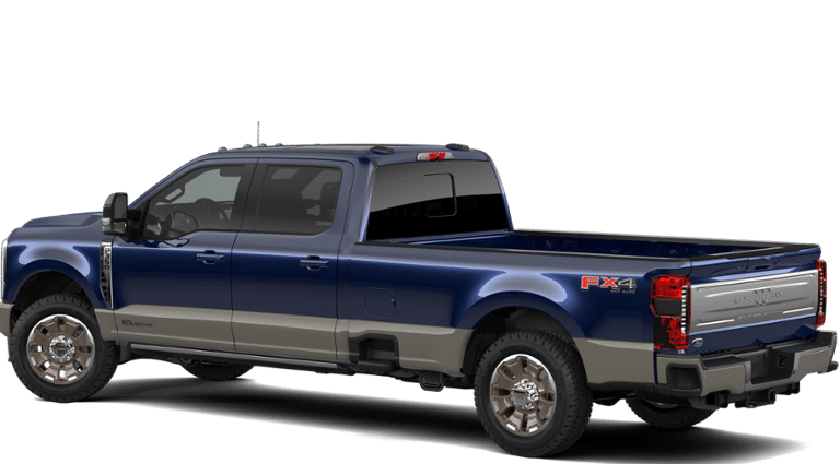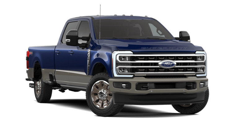 Ford Connectivity Package (1-Year Included), FX4 Off-Road Package (Hill Descent Control, Off-Road Specifically Tuned Shock Absorbers, and Unique FX4 Off-Road Box Decal), Internet access capable: 5G Modem - Ford Connectivity Package, Order Code 710A (Flow-Through Console, Radio: B&O Unleashed Sound System by Bang & Olufsen, SiriusXM with 360L, SYNC 4 with Enhanced Voice Recognition, Unique King Ranch Leather 40/Console/40 Seats, and Wheels: 20 Bright Machined Aluminum), 4WD, 14 Speakers, 4-Wheel Disc Brakes, ABS brakes, Adjustable pedals, Air Conditioning, Alloy wheels, AM/FM radio: SiriusXM with 360L, Auto High-beam Headlights, Auto tilt-away steering wheel, Auto-dimming Rear-View mirror, Automatic temperature control, Brake assist, Compass, Delay-off headlights, Driver door bin, Driver vanity mirror, Dual front impact airbags, Dual front side impact airbags, Electronic Stability Control, Emergency communication system: SYNC 4 911 Assist, Engine Block Heater, Front anti-roll bar, Front Bucket Seats, Front Center Armrest, Front dual zone A/C, Front fog lights, Front License Plate Bracket, Front reading lights, Fully automatic headlights, Garage door transmitter, Heads-Up Display, Heated door mirrors, Heated front seats, Heated rear seats, Heated steering wheel, Illuminated entry, Leather steering wheel, LED Roof Clearance Lights, Low tire pressure warning, Memory seat, Navigation system: Connected Navigation, Outside temperature display, Overhead airbag, Overhead console, Panic alarm, Passenger door bin, Passenger vanity mirror, Pedal memory, Power door mirrors, Power driver seat, Power passenger seat, Power steering, Power windows, Rain sensing wipers, Rear reading lights, Rear seat center armrest, Rear step bumper, Rear window defroster, Remote keyless entry, SecuriCode Keyless Entry Keypad (driver's Side), Security system, Speed control, Split folding rear seat, Steering wheel memory, Steering wheel mounted A/C controls, Steering wheel mounted audio controls, Tachometer, Telescoping steering wheel, Tilt steering wheel, Traction control, Trip computer, Turn signal indicator mirrors, Twin Panel Power Moonroof, Upfitter Switches (6), Variably intermittent wipers, and Ventilated front seats.